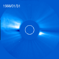 (MPEG 3.2 MB) The solar corona observed over 1 month between 1998 January 26 and February 26 observed with C2. The cadence is about 1 image per hour. |